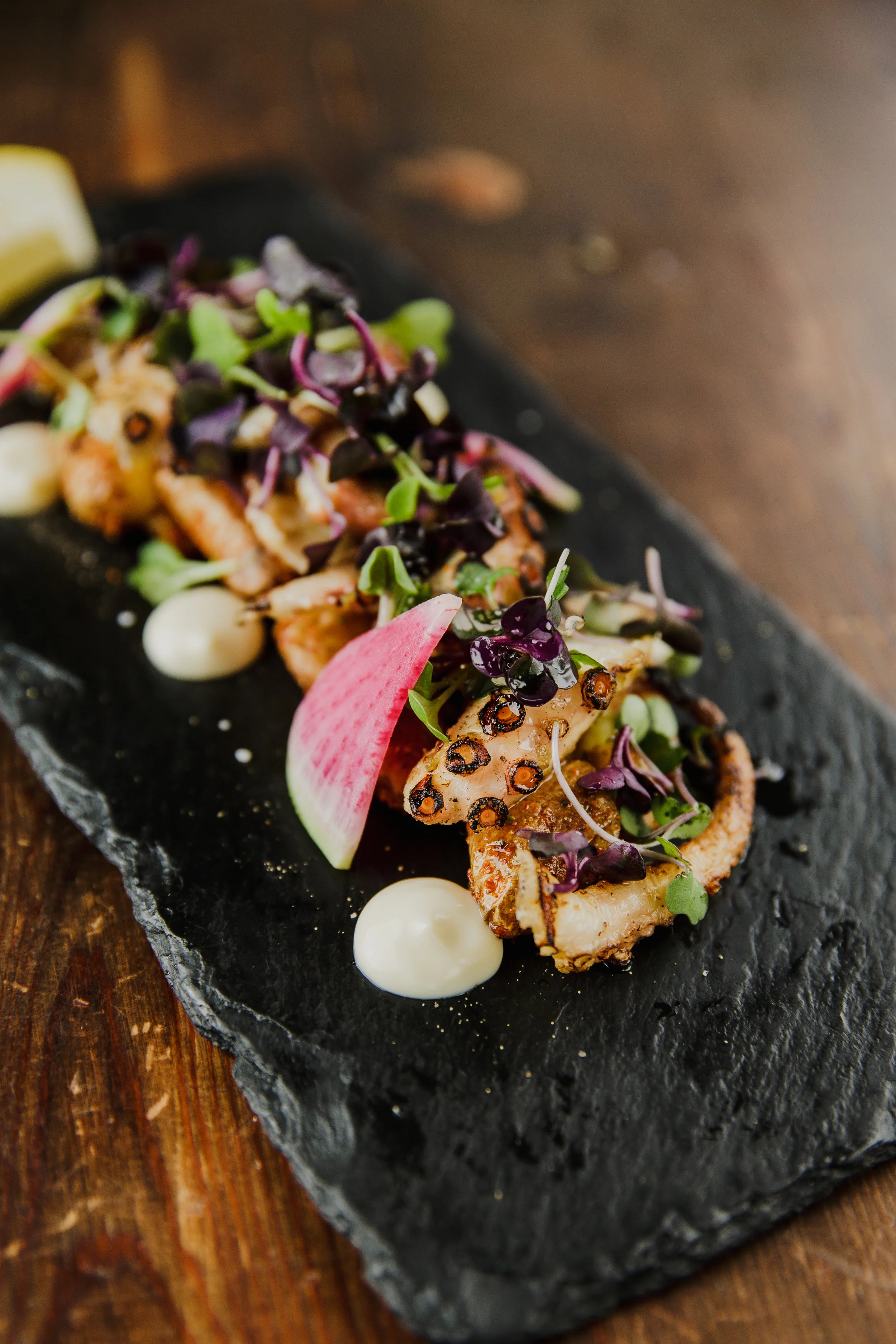 “Chef and owner Sean ‘Sonny’ Nguyen brought his vision to life with DOMU, a neighborhood restaurant and bar featuring house-made noodles, creative small plates, and seasonal cocktails. The name DOMU, meaning ‘a dream come true,’ reflects the unique and unconventional ambiance of each location. At its core, the concept blends authentic Japanese techniques with a modern twist. Inspired by 90s hip-hop, especially Biggie's famous line, ‘it was all a dream,’ DOMU embodies the spirit of turning dreams into reality.”